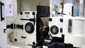 Eletro-spindles de corte e arraste dotados de motores integrados (sem polias ou correias) com potência de 60kW (corte) e 15 kW (arraste), deslizando em rolamentos de esferas de cerâmica, com velocidade de corte variável até 120 m/seg. Os eletro-spindles são duplamente apoiados (sistema “twin grip”) garantindo extrema rigidez. |